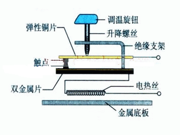 电熨斗是怎样调温的呢?功劳还要归于用双金属片制成的自动。